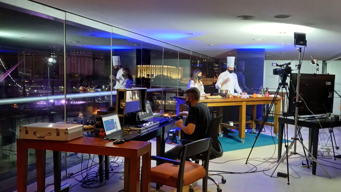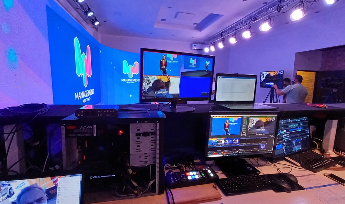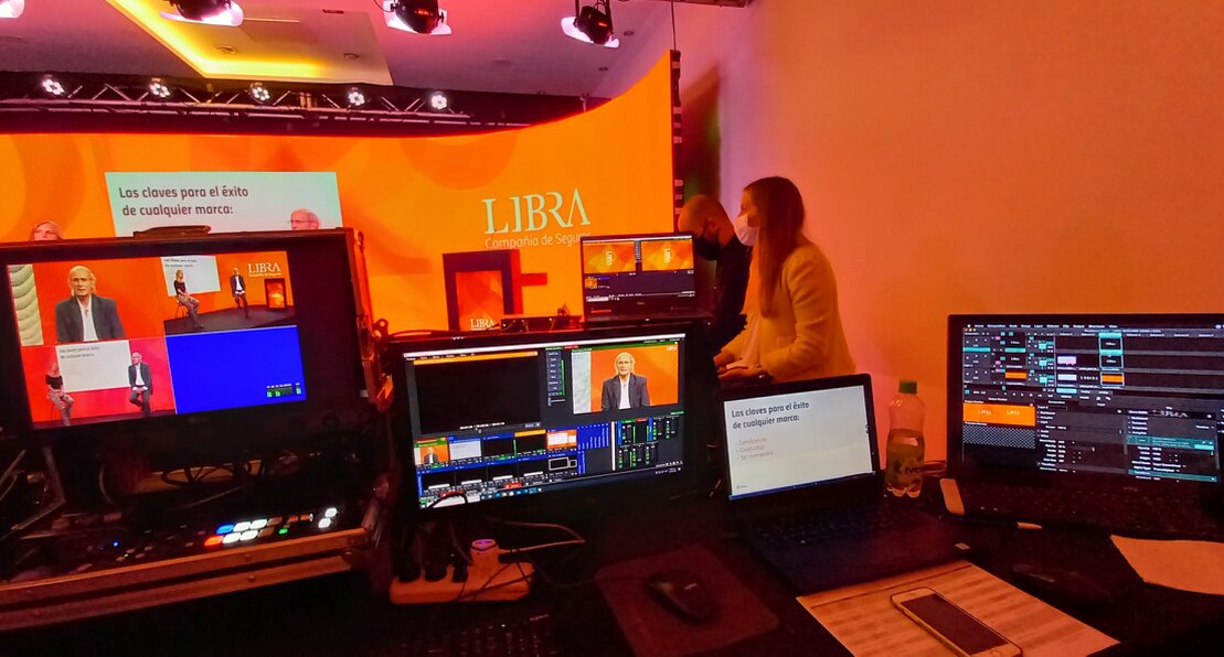 - Configuración previa de escenas, cámaras, audio e iluminación.